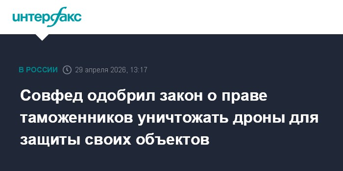 Москва. 29 апреля. INTERFAX.RU - Совет Федерации на заседании в среду одобрил закон о наделении таможенных органов полномочиями по противодействию беспилотным аппаратам для защиты своих объектов и находящихся на них лиц.