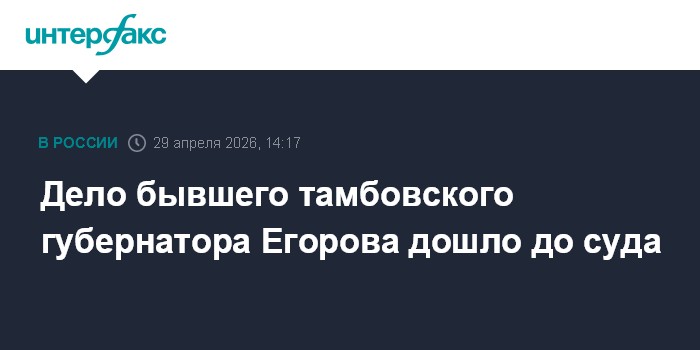 Москва. 29 апреля. INTERFAX.RU - В Ленинский суд Тамбова поступило уголовное дело бывшего губернатора Тамбовской области Максима Егорова, обвиняемого в получении взяток ( ч. 6 ст. 290 УК), сообщила пресс-служба региона.