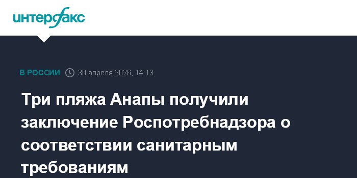"К началу туристического сезона три пляжа города-курорта Анапа (детский оздоровительный комплекс "Жемчужина", детский оздоровительный комплекс "Аврора", ГБУ " Пансионат "Высокий берег") получили санитарно-эпидемиологическое заключение о соответствии санитарным требованиям", - заявили журналистам в пресс-службе ведомства.