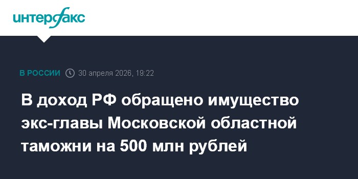 В доход РФ обращено имущество экс-главы Московской областной таможни на 500 млн рублей