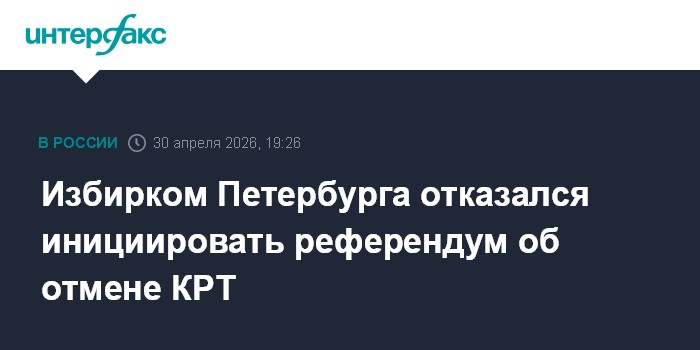 Москва. 30 апреля. INTERFAX.RU - Санкт-Петербургская избирательная комиссия (СПбИК) большинством голосов отказала инициаторам референдума об отмене городских законов 2022 и 2025 годов о комплексном развитии территорий (КРТ) в регистрации инициативной группы.