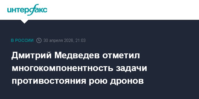 Москва. 30 апреля. INTERFAX.RU - Использование в современной войне роя дронов ставит проблему, с которой пока не может справиться ни одна армия в мире, эта тема на повестке дня, заявил замглавы Совбеза Дмитрий Медведев, посещая учебный центр Ленинградского военного округа.