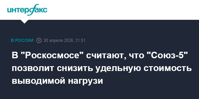 Москва. 30 апреля. INTERFAX.RU - Эксплуатация ракеты-носителя "Союз-5", впервые запущенной с Байконура 30 апреля, позволит значительно снизить удельную стоимость выводимой нагрузки на орбиту, заявил через пресс-службу гендиректор "Роскосмоса" Дмитрий Баканов.