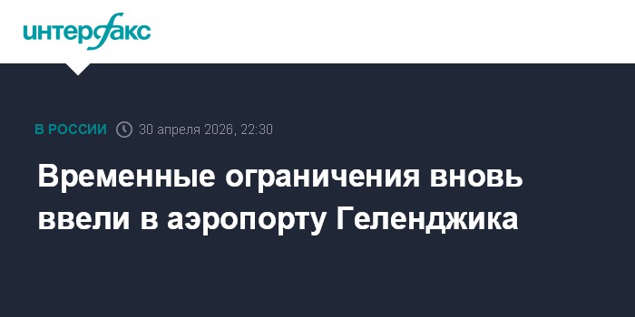 Москва. 30 апреля. INTERFAX.RU - Временные ограничения на прием и выпуск воздушных судов введены в аэропорту Геленджика второй раз за сутки, сообщает Росавиация в канале в Максе.