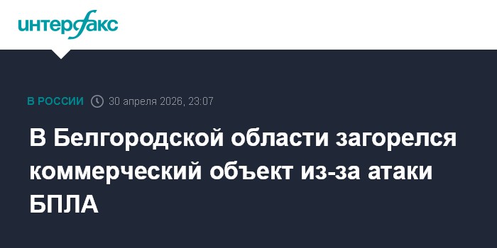 Москва. 30 апреля. INTERFAX.RU - Губернатор Белгородской области Вячеслав Гладков сообщил об атаке украинского дрона в Белгородском округе, в результате которой поврежден коммерческий объект.