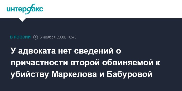 У адвоката нет сведений о причастности второй обвиняемой к убийству Маркелова и Бабуровой