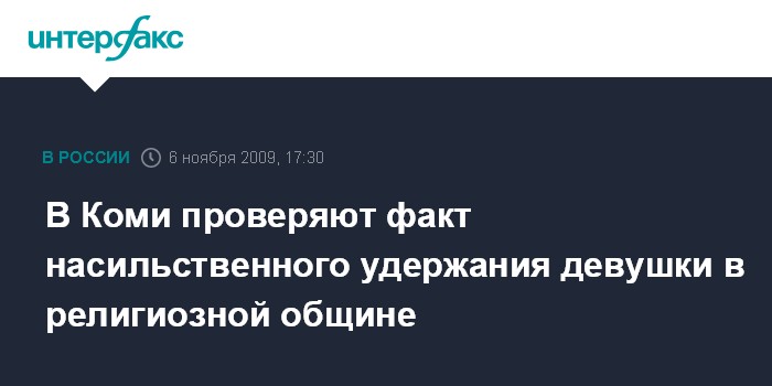 Сыктывкар. 6 ноября. INTERFAX.RU - В Коми проводится проверка по факту насильственного удержания девушки в религиозной общине, сообщает в пятницу пресс-служба СКП РФ.