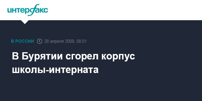 Улан-Удэ. 28 апреля. INTERFAX.RU - В ночь с субботы на воскресенье в бурятском поселке Поворот сгорел учебный корпус школы-интерната. Жертв и пострадавших в результате пожара нет.