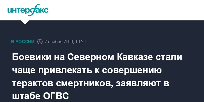 Боевики на Северном Кавказе стали чаще привлекать к совершению терактов смертников, заявляют в штабе ОГВС