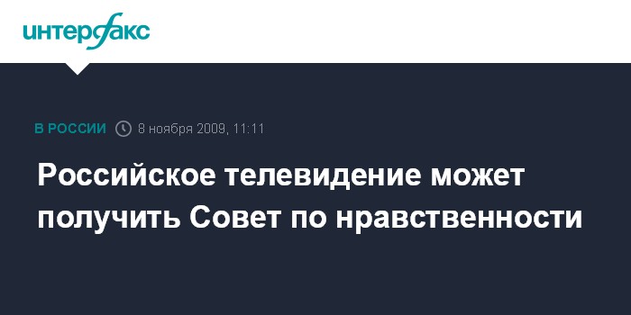 Москва. 8 ноября. INTERFAX.RU - Общественный совет по нравственности на российском телевидении может быть создан в ближайшие год-полтора, считает один из инициаторов создания такого органа, советник спикера Совета Федерации Александр Щипков. "Предполагается, что будущий Совет станет выносить нравственную оценку телепрограммам, к которой авторы вольны прислушиваться или нет. Мы не планируем создавать какое-то "министерство по нравственности", которое диктовало бы свободным людям, как им жить", - сказал А.Щипков на одном из "круглых столов" в рамках проходящей в Москве выставки "Православная Русь".