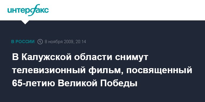 В Калужской области снимут телевизионный фильм, посвященный 65-летию Великой Победы