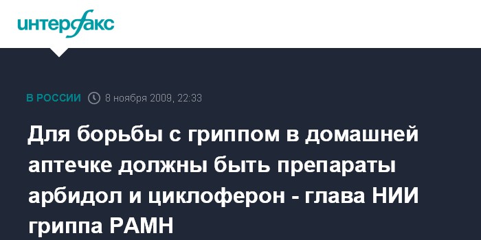 Для борьбы с гриппом в домашней аптечке должны быть препараты арбидол и циклоферон - глава НИИ гриппа РАМН