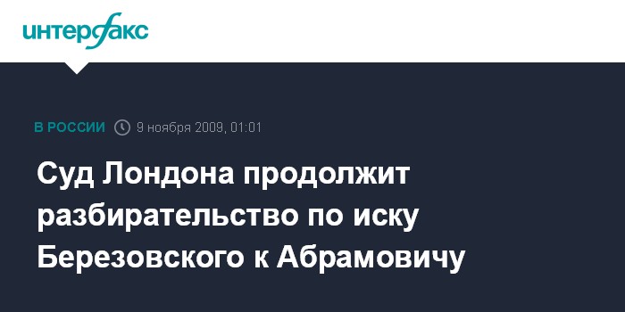 Лондон. 9 ноября. ИНТЕРФАКС - Коммерческий суд Лондона в понедельник продолжит разбирательство по иску Бориса Березовского к Роману Абрамовичу.