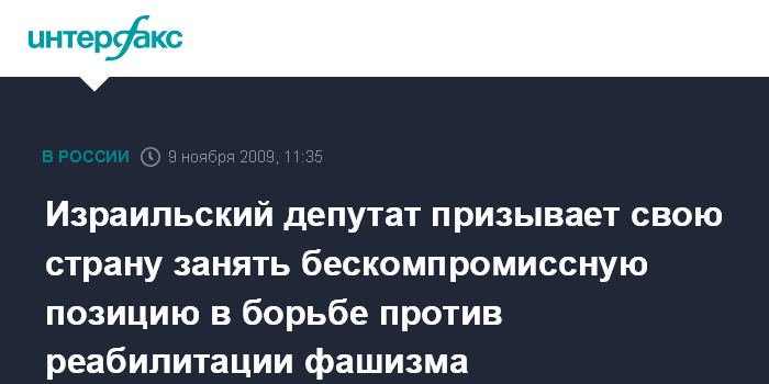Израильский депутат призывает свою страну занять бескомпромиссную позицию в борьбе против реабилитации фашизма