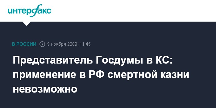 Москва. 9 ноября. INTERFAX.RU – Смертная казнь в России применяться не может, заявил постоянный представитель Госдумы в Конституционном суде РФ Александр Харитонов на пленарном заседании суда.