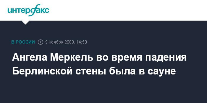 Лондон. 9 ноября. INTERFAX.RU - Нынешний канцлер Германии Ангела Меркель 9 ноября 1989 года решила не изменять своей еженедельной традиции, несмотря на слухи о падении стены между Западным и Восточным Берлином, и отправилась в тот день в сауну, пишет в понедельник британская газета Daily Telegraph.