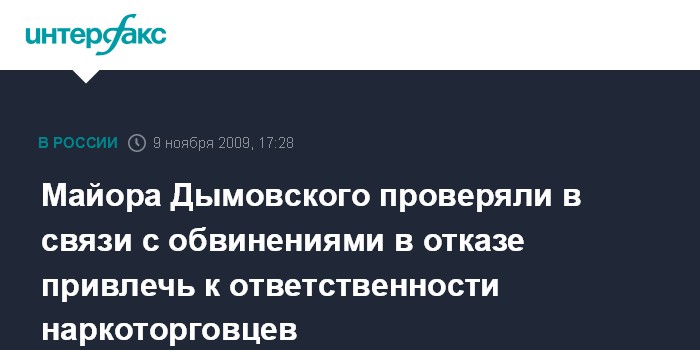 Москва. 9 ноября. INTERFAX.RU - На момент публикации видеообращения майора Алексея Дымовского в отношении него проводилась проверка в связи с отказом привлекать к уголовной ответственности подозреваемых в наркоторговле, сообщил "Интерфаксу" источник в департаменте собственной безопасности (ДСБ) МВД РФ.