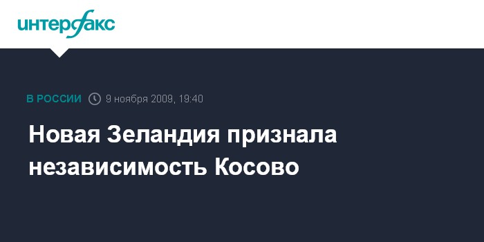 Приштина. 9 ноября. INTERFAX.RU - Власти Новой Зеландии признали Косово независимым и суверенным государством, подписав акт об установлении дипломатических отношений между странами, сообщил в понедельник МИД Республики Косово.