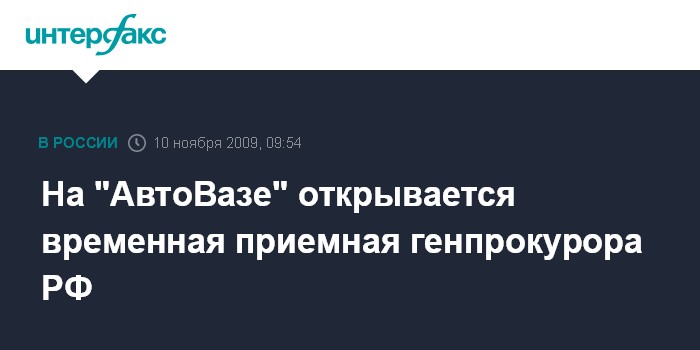 Москва. 10 ноября. INTERFAX.RU - Временная приемная генерального прокурора России в "АвтоВАЗе" будет открыта в Тольятти.
