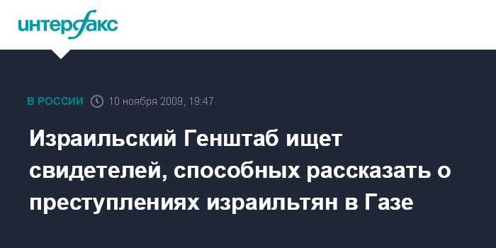 Москва. 10 ноября. INTERFAX.RU - Начальник генерального штаба армии обороны Израиля Габи Ашкенази призвал палестинцев из сектора Газа дать свидетельские показания обо всех преступлениях и правонарушениях, совершенных израильтянами во время военной операции, проведенной против группировки ХАМАС в начале 2009 года, сообщает агентство ЭФЭ.