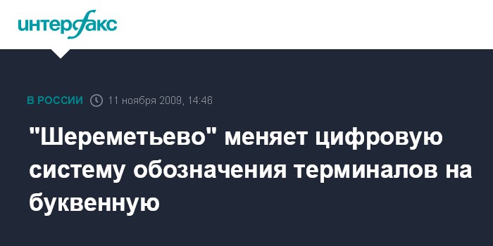 Москва. 11 ноября. INTERFAX.RU - Международный аэропорт "Шереметьево" вводит новую международную буквенную (латиница) систему обозначения терминалов взамен цифровой, говорится в сообщении компании.