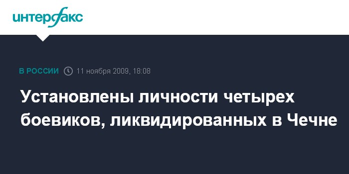Грозный. 11 ноября. INTERFAX.RU - Установлены личности четырех уничтоженных в окрестностях населенного пункта Сержень-Юрт боевиков. Ранее сообщалось о ликвидации в ходе спецоперации пяти боевиков.