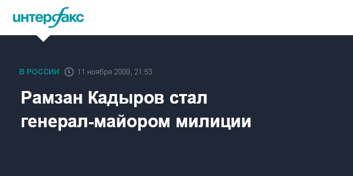 Грозный. 11 ноября. INTERFAX.RU - Президенту Чеченской республики Рамзану Кадырову присвоено специальное звание генерал-майора милиции, сообщили "Интерфаксу" в администрации главы Чечни в среду.
