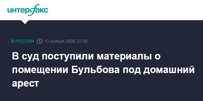 "В Басманный районный суд поступили материалы в отношении шести человек, в том числе А.Бульбова, об избрании меры пресечения в виде домашнего ареста", - сообщила в среду вечером "Интерфаксу" руководитель пресс-службы Мосгорсуда Анна Усачева.