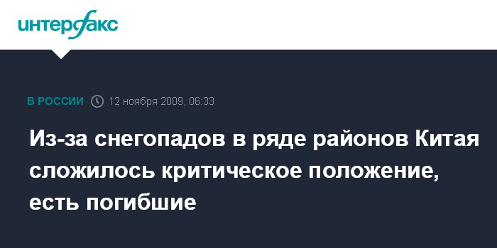 Правительство северной китайской провинции Хэбэй распространило специальное уведомление о том, что ситуация в ней "близка к критической". Сообщается, что такого снегопада, как в ноябре 2009 года, "не было уже 54 года".