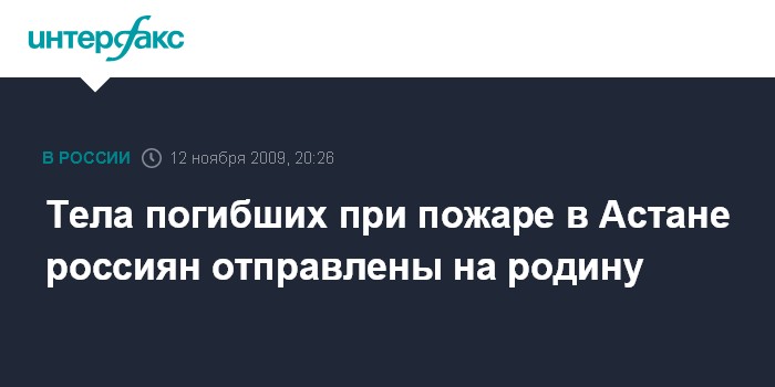 Астана. 12 ноября. INTERFAX.RU - Тела пяти граждан России, погибших во время пожара в строящемся в Астане производственно-технологическом комплексе ТОО "АстанаПром", в четверг вечером отправлены автотранспортом на родину, к местам захоронения, сообщила пресс-служба городского акимата (мэрии).