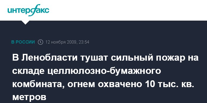 Санкт-Петербург. 12 ноября. ИНТЕРФАКС СЕВЕРО-ЗАПАД - Сильный пожар тушат в Ленинградской области на складе готовой продукции целлюлозно-бумажного комбината в поселке Сясьстрой.