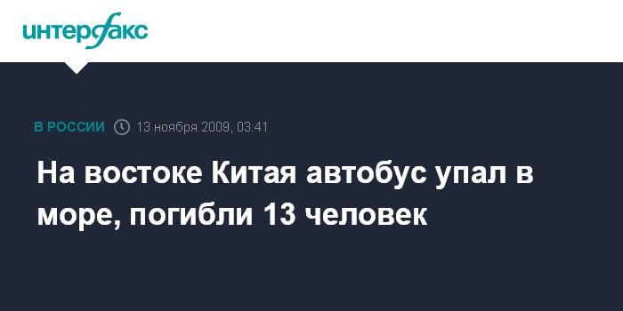 Пекин. 13 ноября. ИНТЕРФАКС - В результате дорожно-транспортного происшествия в восточной китайской провинции Шаньдун погибли 13 человек, девять человек травмированы, сообщили местные СМИ.