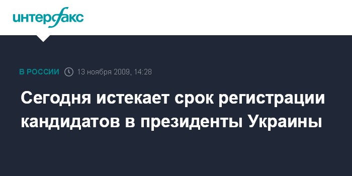 Киев. 13 ноября. INTERFAX.RU - 13 ноября истекает срок регистрации кандидатов в президенты Украины, пока ЦИК зарегистрировал 18 претендентов на высшую государственную должность.