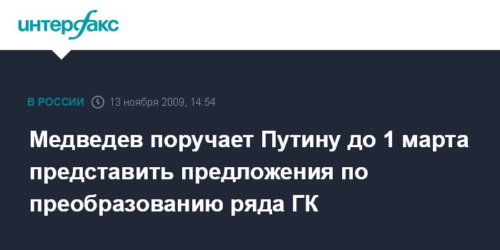 Медведев поручает Путину до 1 марта представить предложения по преобразованию ряда ГК
