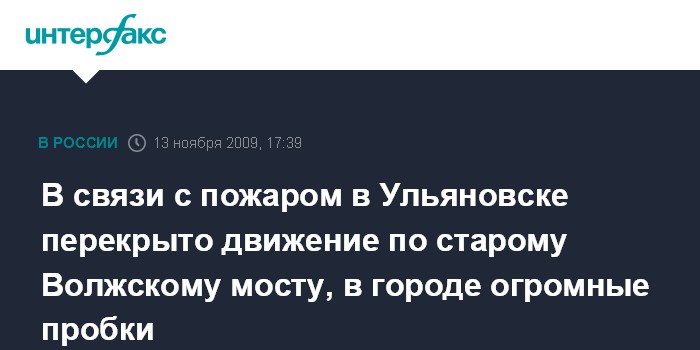 В связи с пожаром в Ульяновске перекрыто движение по старому Волжскому мосту, в городе огромные пробки
