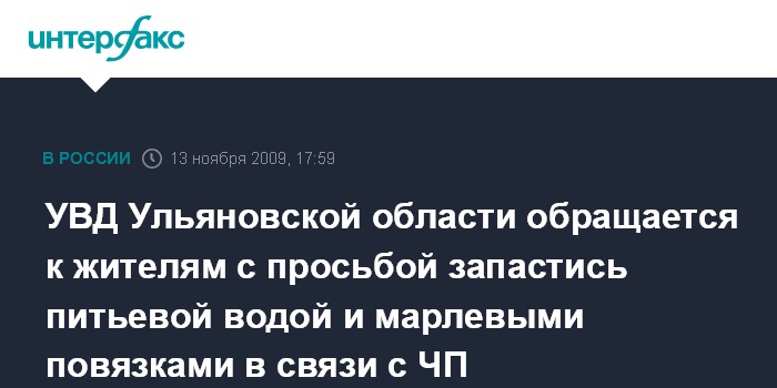 УВД Ульяновской области обращается к жителям с просьбой запастись питьевой водой и марлевыми повязками в связи с ЧП