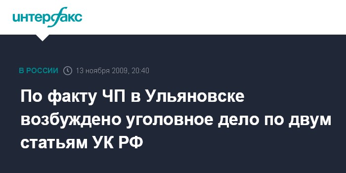 По факту ЧП в Ульяновске возбуждено уголовное дело по двум статьям УК РФ