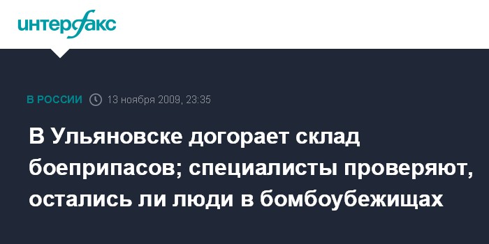 Москва. 13 ноября. ИНТЕРФАКС - На месте пожара на военном складе в Ульяновске специалисты проверяют бомбоубежища на предмет нахождения в них людей.