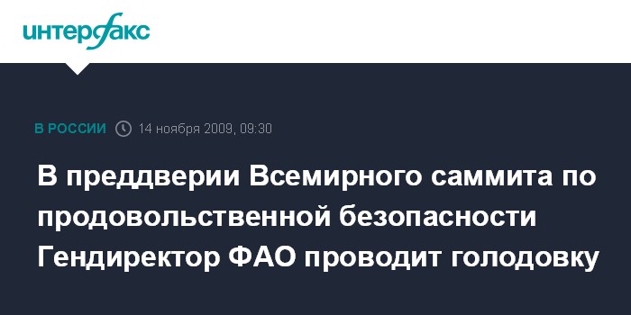 В преддверии Всемирного саммита по продовольственной безопасности Гендиректор ФАО проводит голодовку