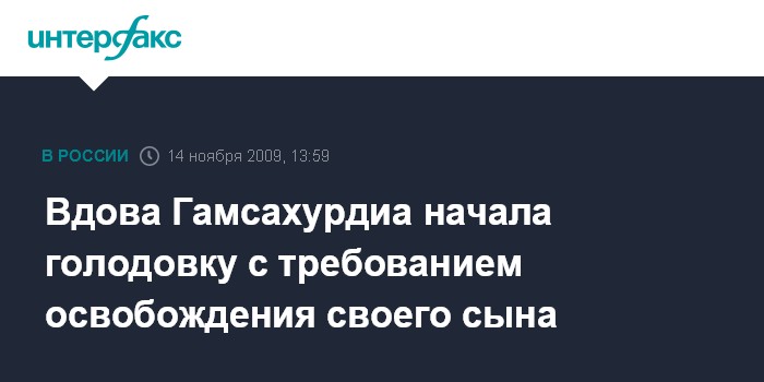 Москва. 14 ноября. INTERFAX.RU - Манана Арчвадзе-Гамсахурдиа - вдова президента Грузии в 1990-1992 годах Звиада Гамсахурдиа и ее сторонники начали в субботу голодовку перед офисом Народного защитника Грузии. Как заявила журналистам М.Арчвадзе-Гамсахурдиа, она требует освобождения своего сына Цотне Гамсахурдиа.