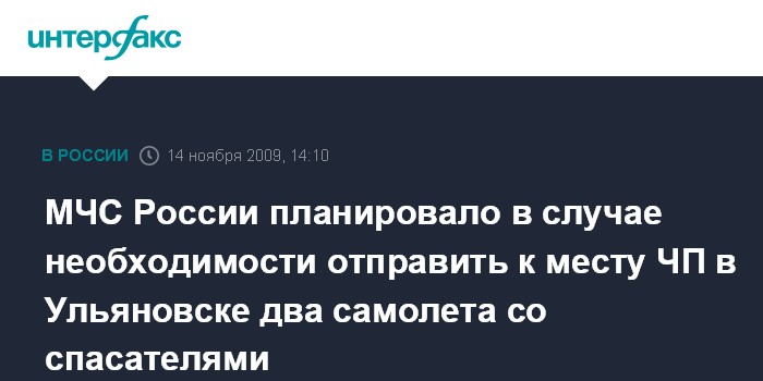 МЧС России планировало в случае необходимости отправить к месту ЧП в Ульяновске два самолета со спасателями
