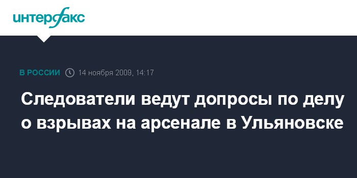 Москва. 14 ноября. INTERFAX.RU - Около 70 человек уже допрошено по делу о взрывах в цехах федерального государственного унитарного предприятия "31-й арсенал" на территории воинской части в Ульяновске, сообщил в субботу СКП РФ.