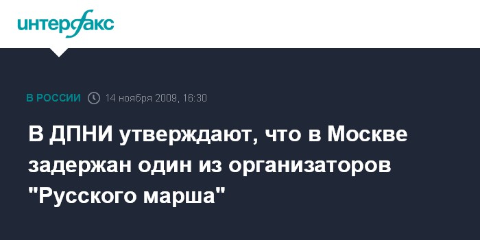 Москва. 14 ноября. INTERFAX.RU - В Москве сотрудники правоохранительных органов задержали одного из организаторов "Русского марша", лидера националистической организации "Славянский союз" Дмитрия Демушкина, утверждают в ДПНИ.
