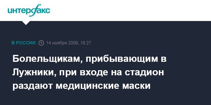 Болельщикам, прибывающим в Лужники, при входе на стадион раздают медицинские маски