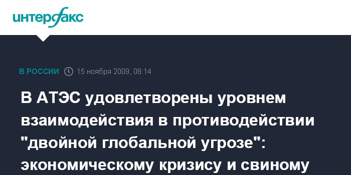 В АТЭС удовлетворены уровнем взаимодействия в противодействии "двойной глобальной угрозе": экономическому кризису и свиному гриппу