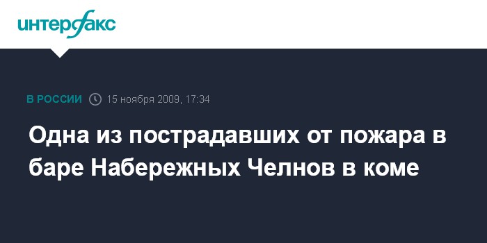 Казань/Набережные Челны. 15 ноября. INTERFAX.RU - Состояние одной из пострадавших при пожаре утром в воскресенье в диско-баре "Атмосфера" в поселке ГЭС (в черте Набережных Челнов, Татарстан), остается тяжелым. "Девушка в коме, подключена к аппарату искусственного дыхания, но динамика у нее положительная", - сообщил агентству "Интерфакс-Поволжье" главный врач Больницы скорой медицинской помощи (БСМП) Набережных Челнов Ильдар Хайруллин.
