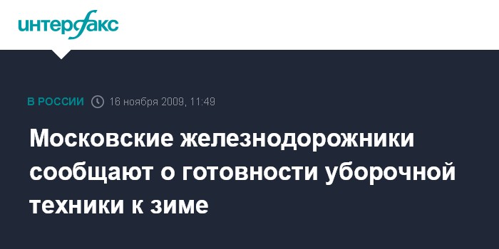 Москва. 16 ноября. INTERFAX.RU – Московская железная дорога завершила подготовку путевой техники к работе в зимних условиях, сообщили "Интерфаксу" в службе по связям с общественностью МЖД в понедельник.