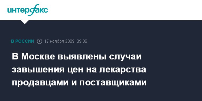 Москва. 17 ноября. INTERFAX.RU - Столичная прокуратура выявила нарушения рядом розничных сетей и поставщиков порядка ценообразования на лекарства, сообщила официальный представитель Генпрокуратуры РФ Марина Гриднева.