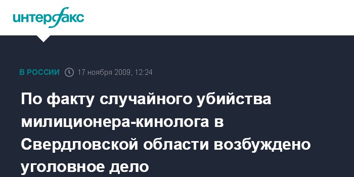 По факту случайного убийства милиционера-кинолога в Свердловской области возбуждено уголовное дело