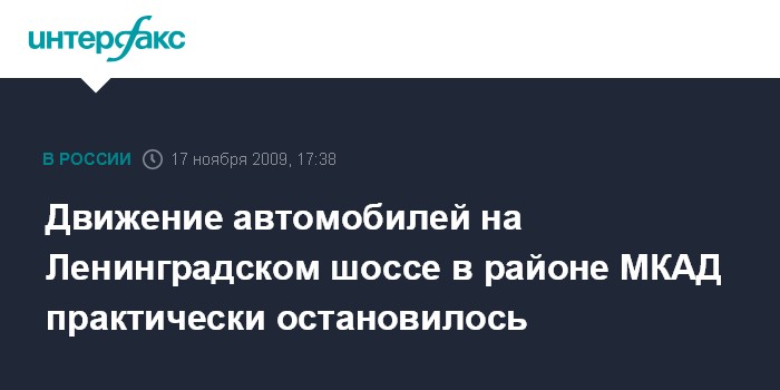 Москва. 17 ноября. INTERFAX.RU - Движение автомобильного потока из Москвы на ленинградском направлении практически парализовано, передает корреспондент "Интерфакса". В настоящее время наиболее сложная ситуация сложилась на пересечении Ленинградского шоссе с Московской кольцевой автодорогой, где автомобили стоят практически без движения уже на протяжении 40 минут. Учитывая вечернее время, практически непрерывный затор на этом направлении растянулся вплоть до Тверской улицы.